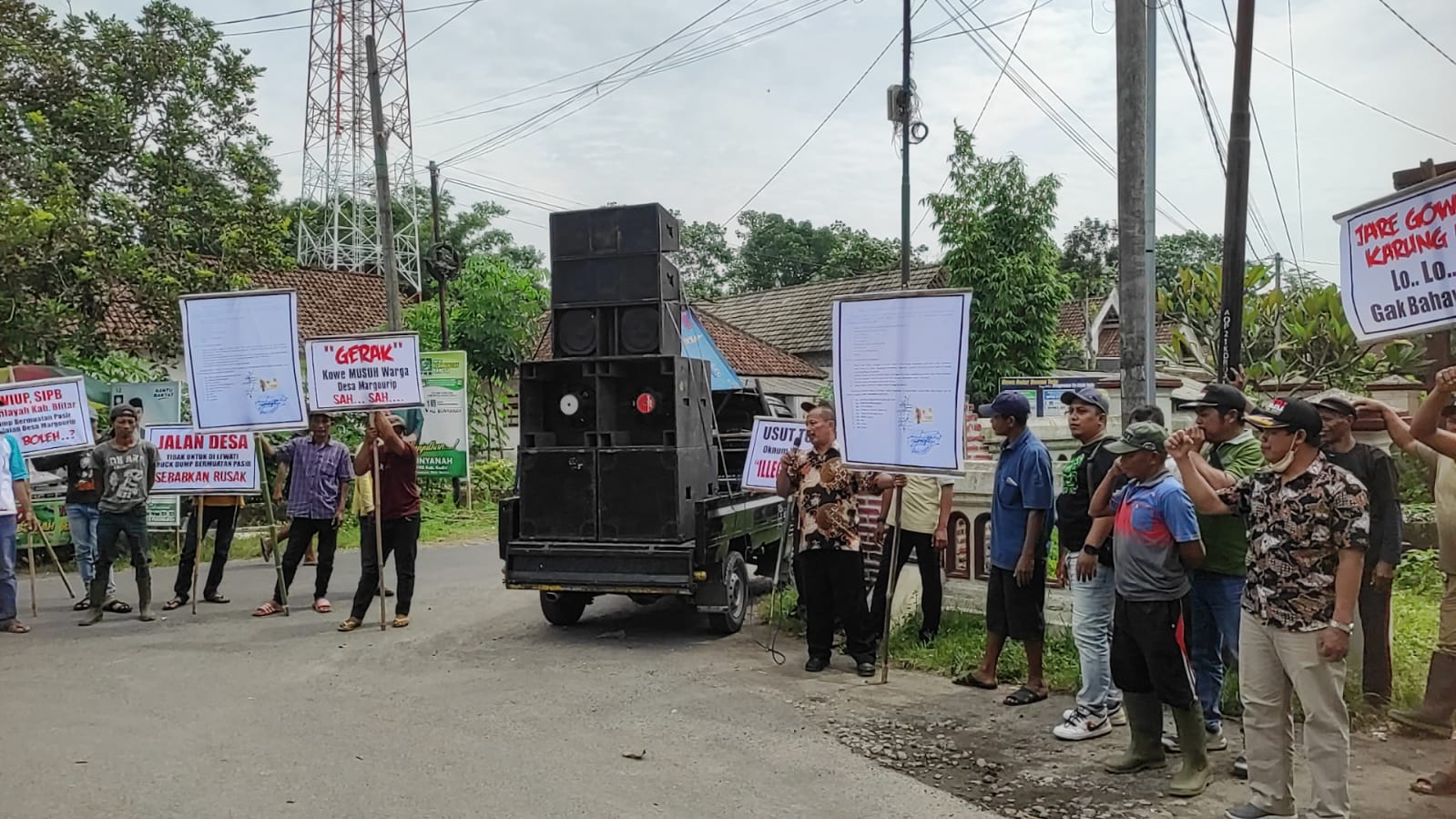 Di tempat yang sama, penasihat hukum warga Desa Margourip, Luka Fardani, mengatakan, aksi warga merupakan reaksi dari rencana demo para sopir truk hari ini.
