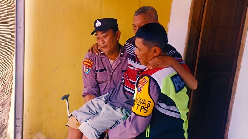 Lantas, Kompol Mukhlason bersama Aipda Totok dan anggota TNI langsung menawarkan diri membantu lansia tersebut untuk menuju TPS guna menyalurkan hak suaranya. Dan, tanpa ragu, Aipda Totok menggendong lansia tersebut menuju TPS yang berjarak sekitar 100 meter dari kediamannya.