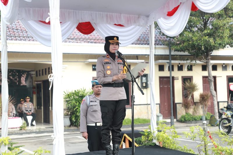 Upacara apel keselamatan lalu lintas ini dipimpin langsung oleh Waka Polres Kediri Kompol Verawaty Thaib S.I.K.