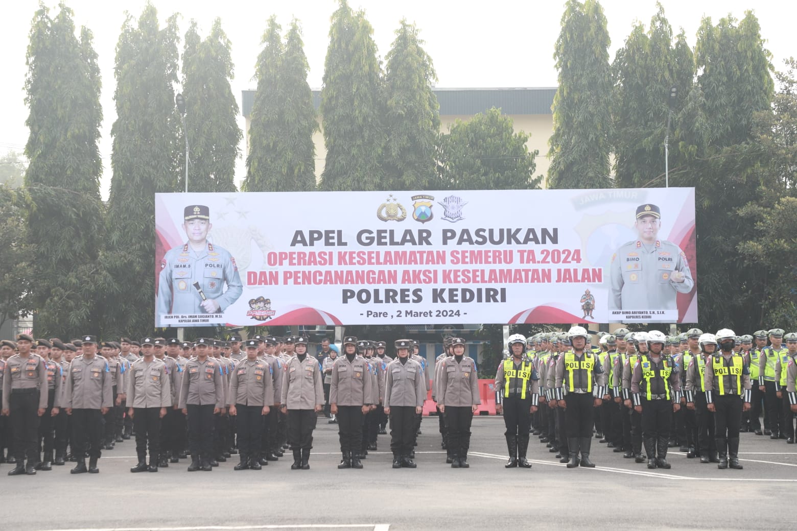Purnamanews.com | Kediri –  Polres Kediri menggelar upacara apel gelar pasukan keselamatan lalu lintas Semeru 2024, Sabtu (2/3/2024).