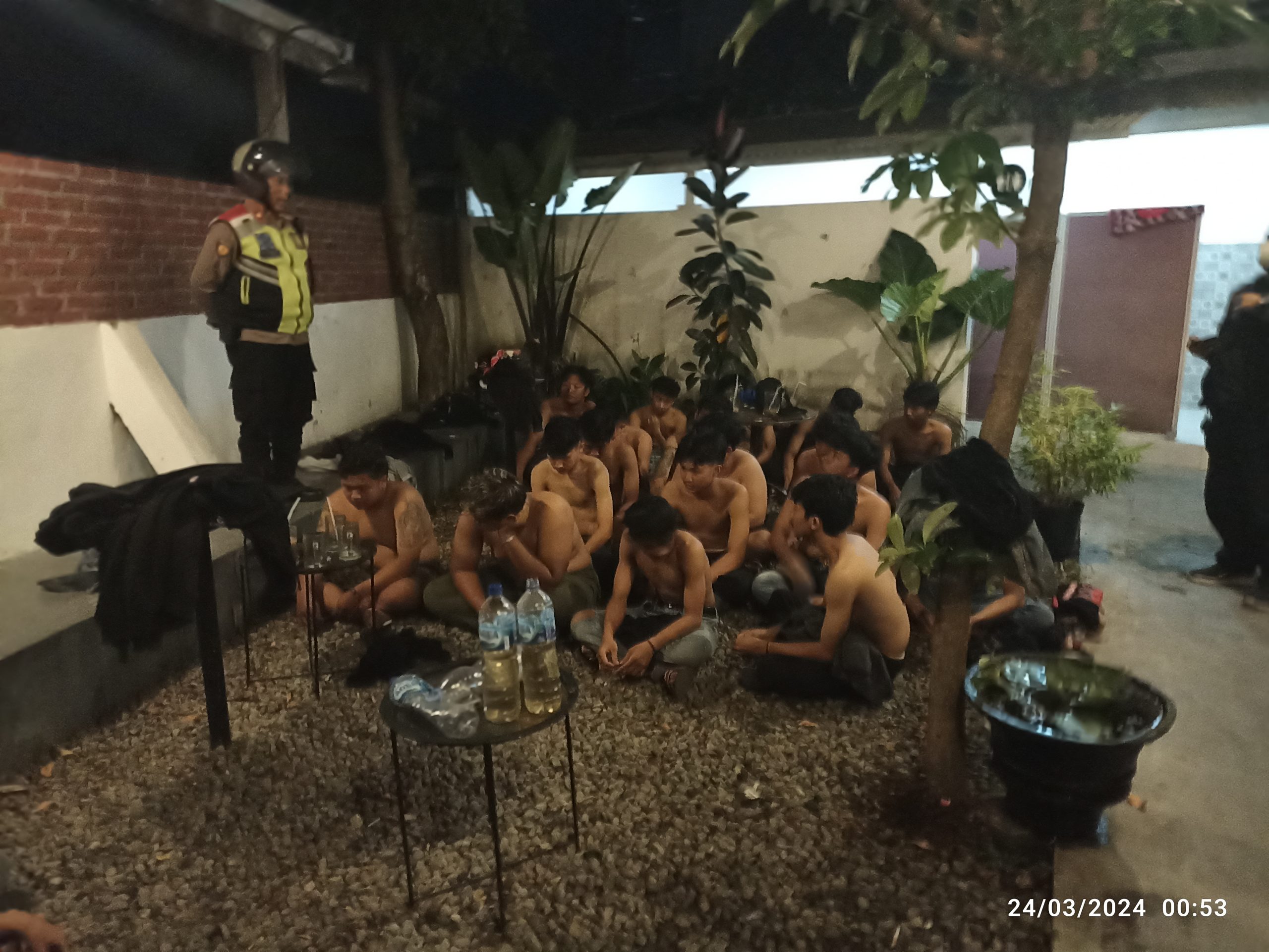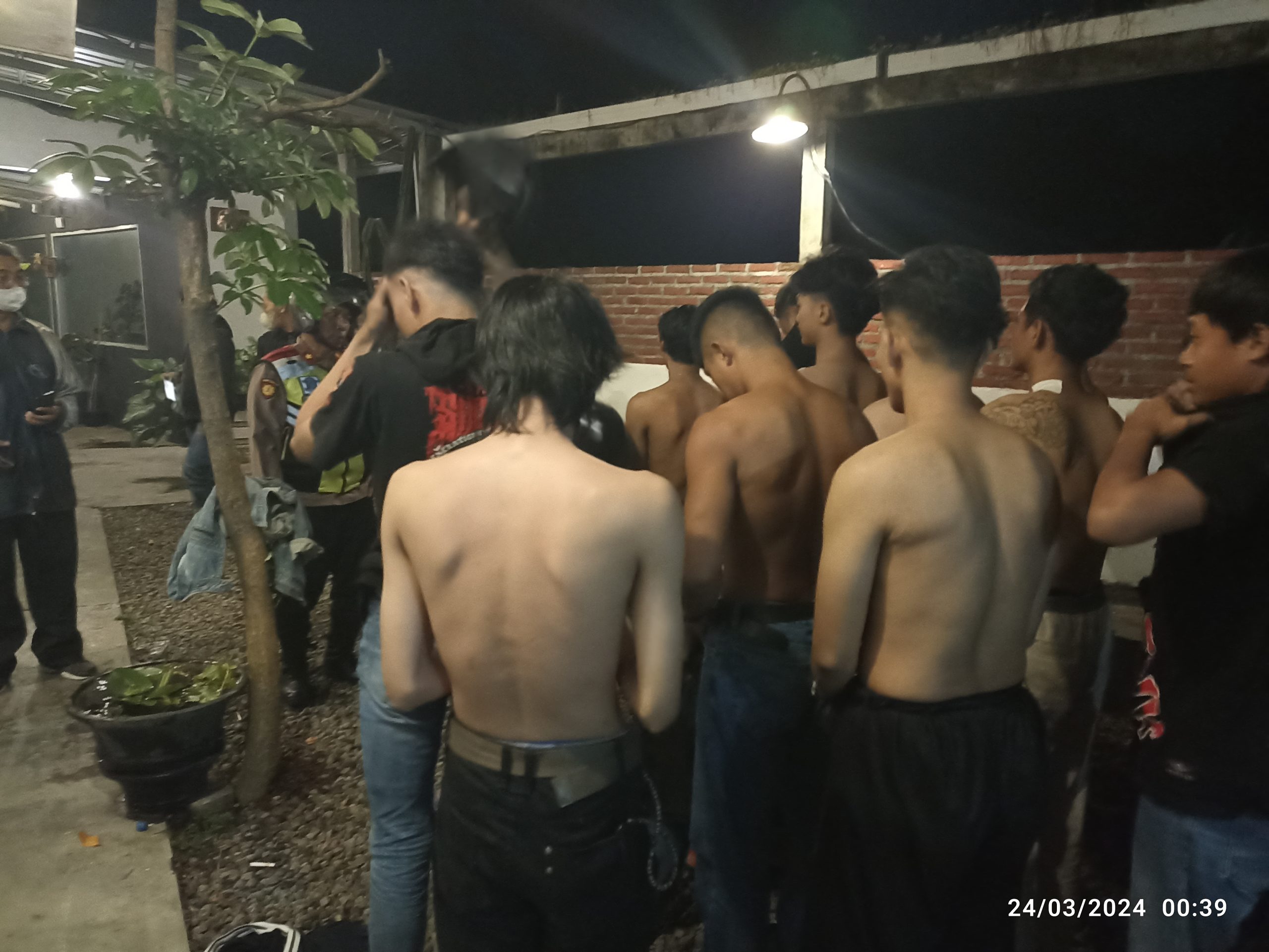 Mukhlason mengungkapkan, pihaknya menerima aduan masyarakat melalui perpesanan WhatsApp terkait ada puluhan remaja memakai atribut ” komunitas berafiliasi pada salah satu perguruan pencak silat ” sedang berkumpul/ berkerumun di salah satu Kafe, wilayah Campurejo.