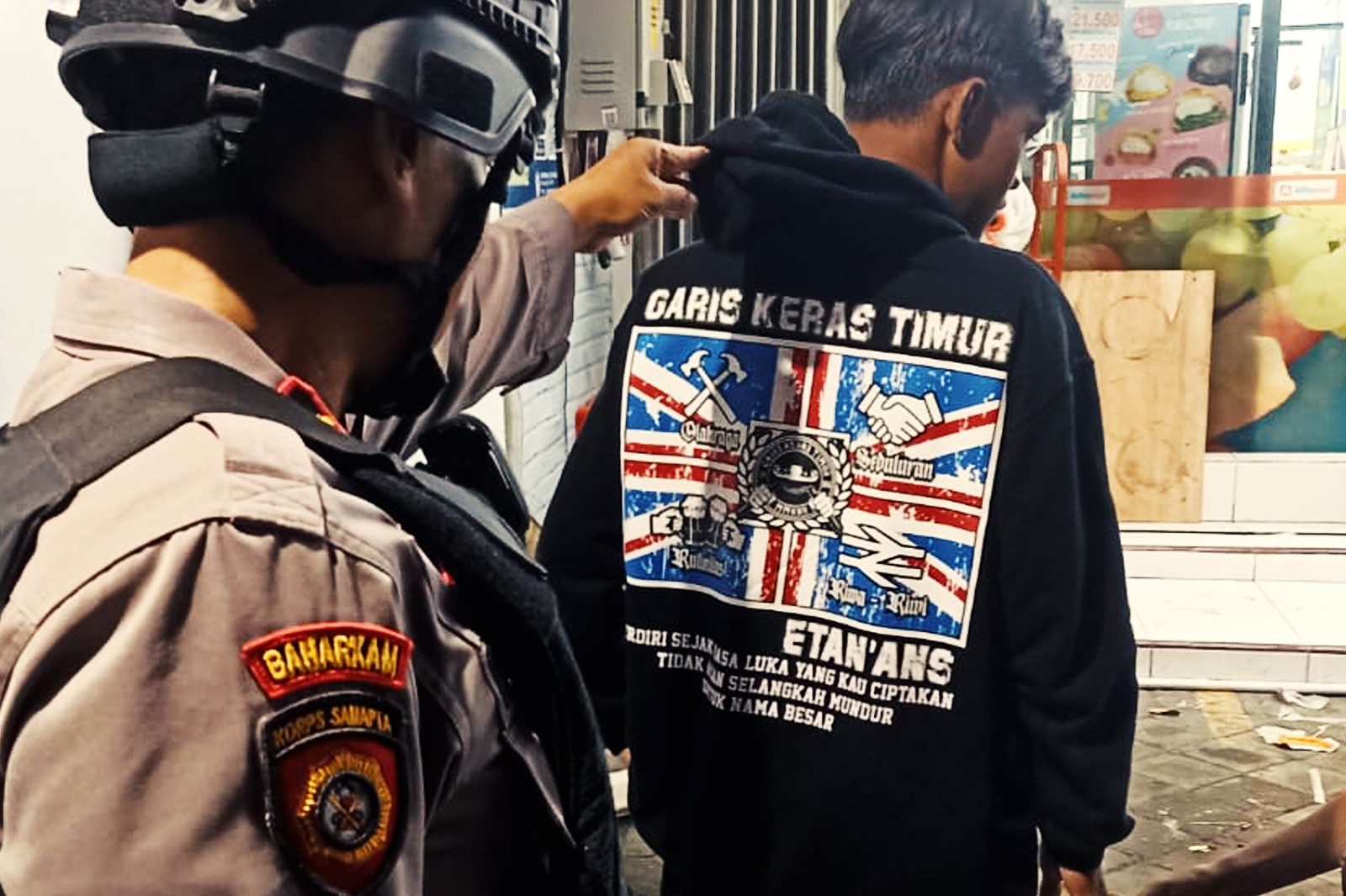 Purnamanews.com | Kediri Kota – Hal tak terduga dijumpai tim patroli Polsek Mojoroto saat dalam perjalanan patroli menyisir ruas jalan protokol, tepatnya di Jalan Veteran, pada Minggu dini hari 14 April 2024. Tim Patroli Polsek Mojoroto yang dipimpin Kapolseknya, Kompol Mukhlason, tiba – tiba dikejutkan dengan keberadaan sejumlah kawanan remaja mengenakan jaket hoodie  dan kaos  bergambar identitas komunitas tertentu, yang diduga merupakan komunitas gangster.
