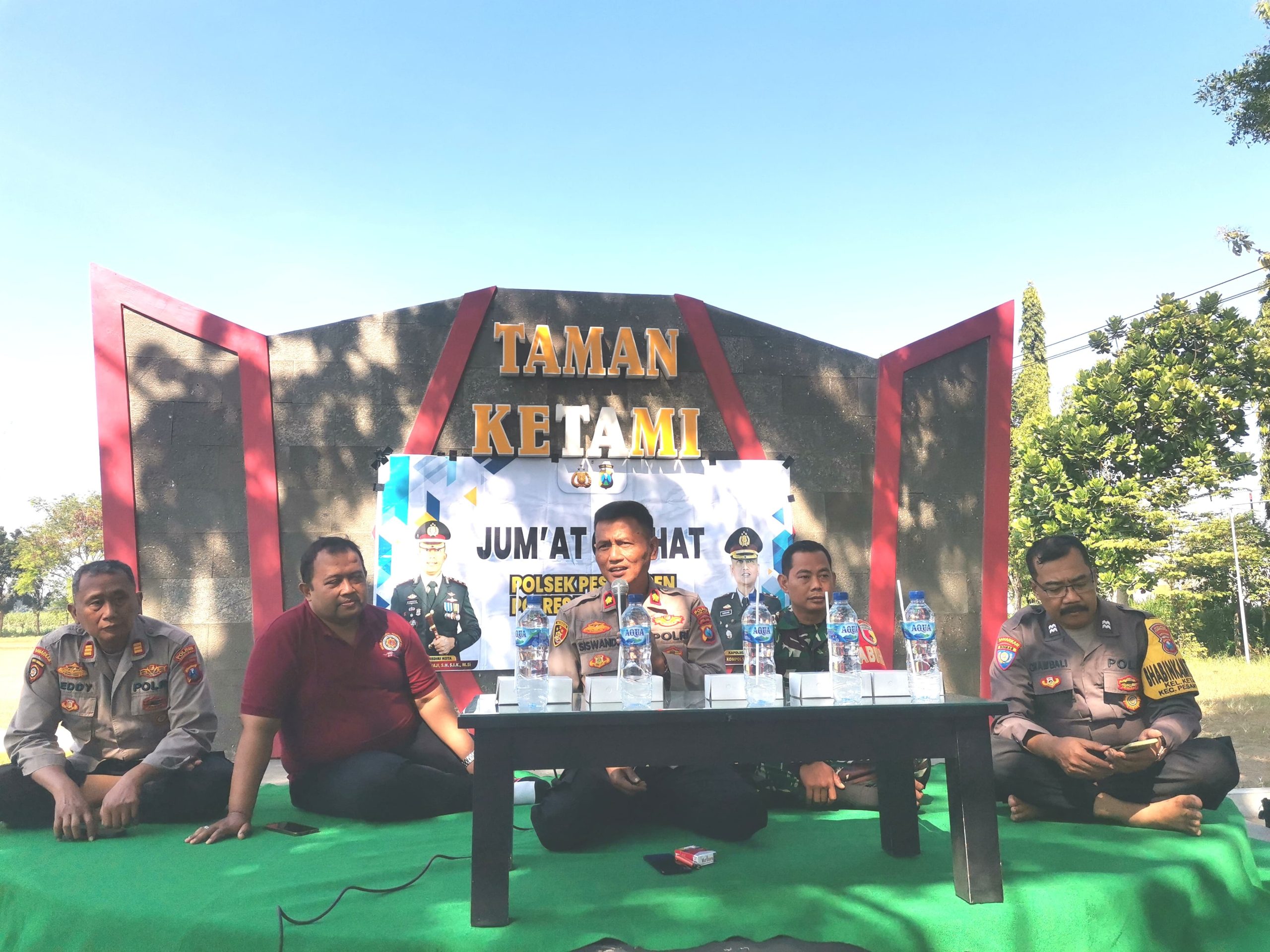Purnamanews.com | Kediri Kota– Jajaran Polsek Pesantren menggelar kegiatan bertajuk ” Jumat Curhat ” bersama warga di Taman Ketami, Kelurahan Ketami, Kecamatan Pesantren, Kota Kediri Jawa Timur, Jumat 19 Juli 2024.