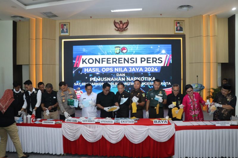 TANGERANG — Polres Metro Tangerang Kota, Polda Metro Jaya memusnahkan 3,89 Kg. narkotika jenis sabu-sabu dan ribuan butir pil Exstasi serta obat berbahaya jenis G, hasil Operasi Nila Jaya tahun 2024.