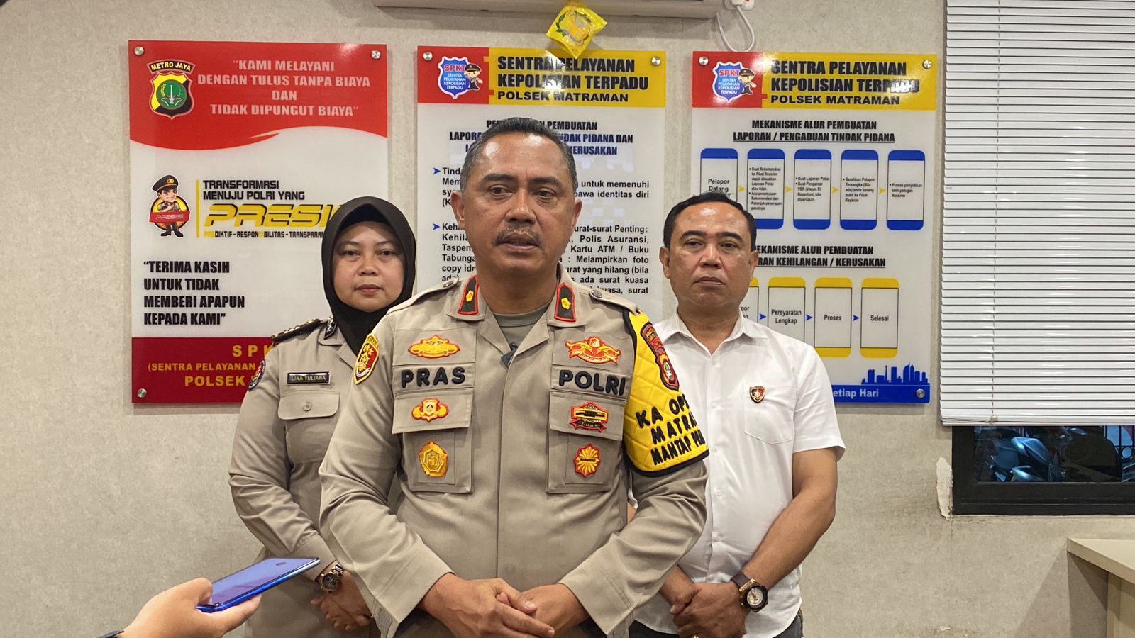 Petugas kepolisian dari Polsek Matraman yang tiba di lokasi langsung melakukan olah TKP. Kejadian berawal ketika korban mengira pelaku akan membuat laporan polisi.