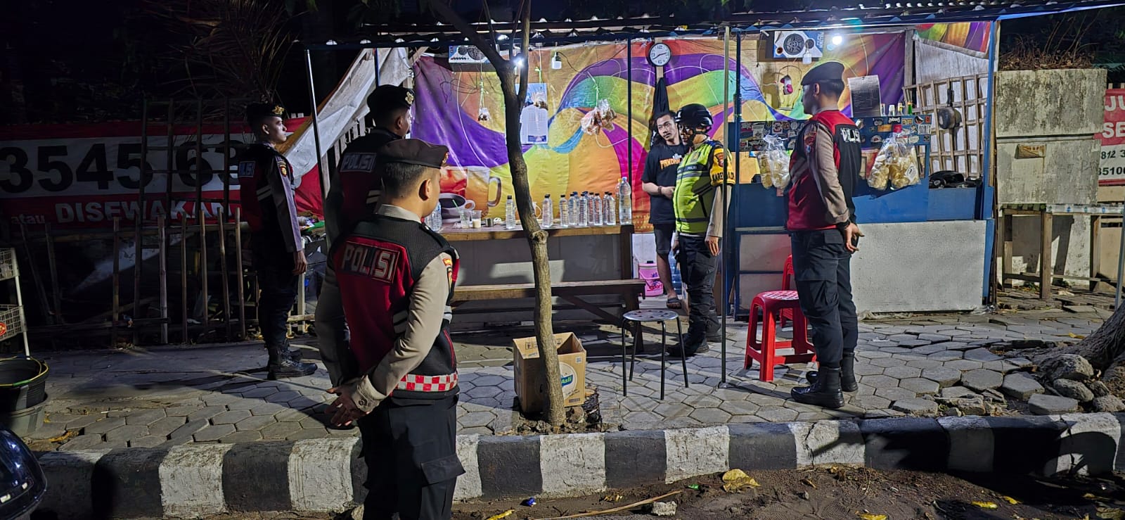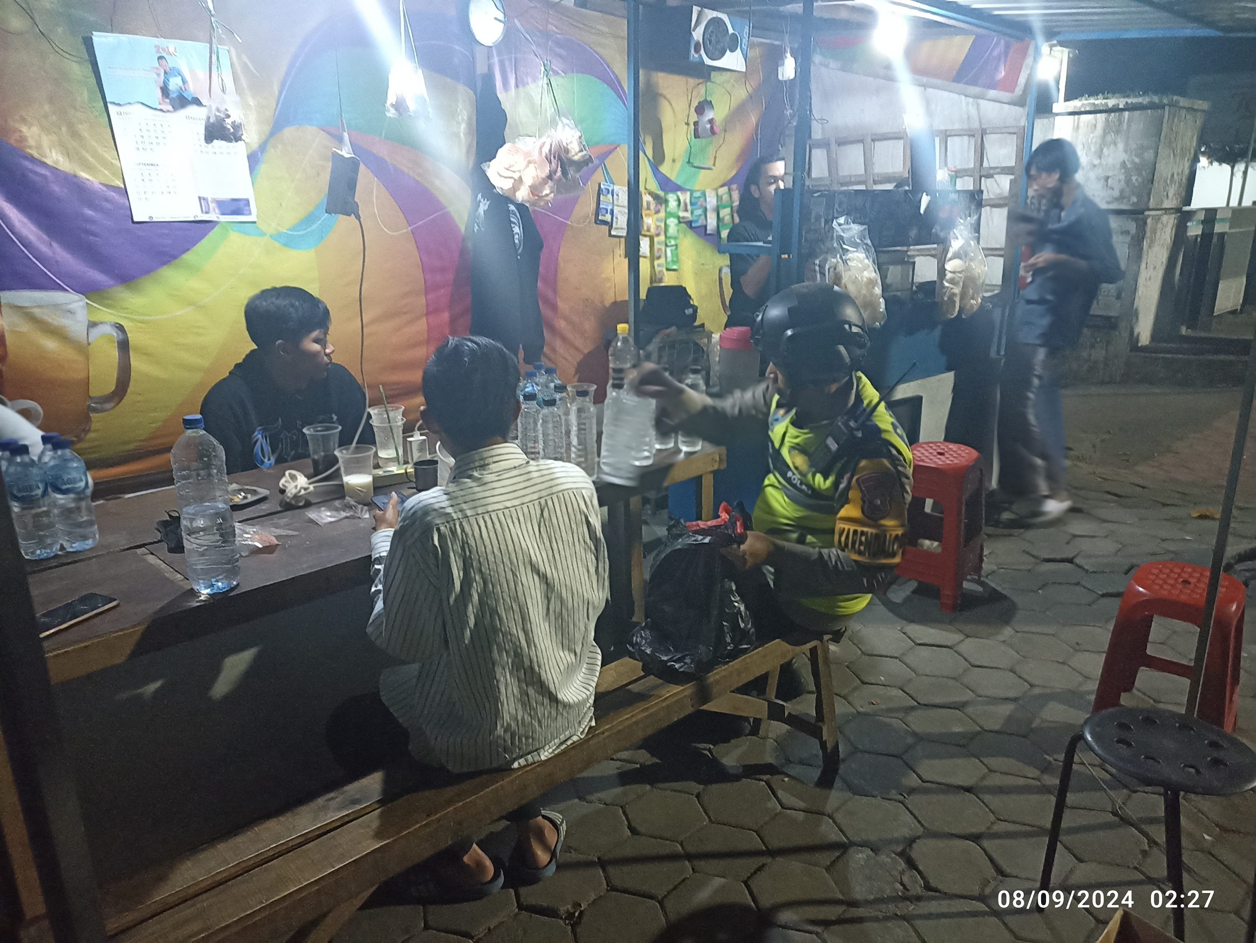 Di warung yang berlokasi di Jalan PK Bangsa ini dirinya melakukan pemeriksaan terhadap beberapa remaja yang masih nongkrong sambil minum – minuman keras jenis ciu di warung tersebut.