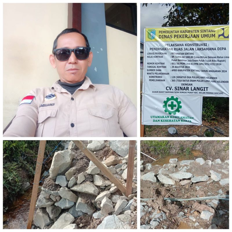 “Hasil pemantauan kami di lokasi kerja, pasangan batu barau penahan timbunan tanah dikerjakan tidak sesuai dengan semestinya, kami selaku warga KKI dan selaku aktivis yang melakukan kontrol sosial, meminta kepada pihak Dinas PU Sintang, para PPK dan PPTK untuk benar dalam menjalankan tupoksinya,” ungkap Syamsuardi, MA. kepada media di Warkop D’launge Sintang.