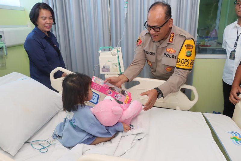JAKARTA – Kapolres Metro Jakarta Utara, Kombes Pol. Gidion Arif Setyawan beserta jajaran menjenguk dua anak, NRA (6) dan MAA (4) korban kekerasan oleh ibu tirinya di Rumah Sakit Umum Daerah (RSUD) Koja, Rabu (18/9/2024).