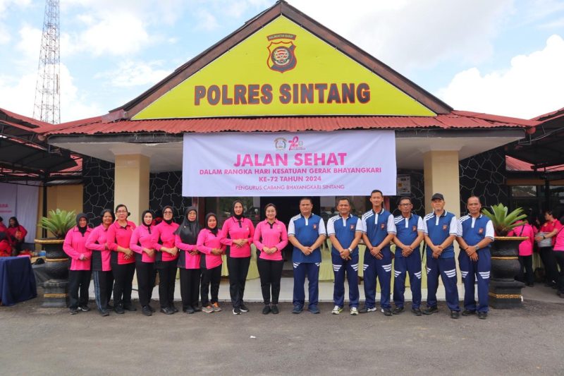 Rangkaian pelaksanaan untuk memperingati Hari Kesatuan Gerak Bhayangkari (HKGB) yang ke 72, sebagai kegiatan pembuka Bhayangkari Polres Sintang menggelar jalan sehat, Jumat (27/9) Pagi.
