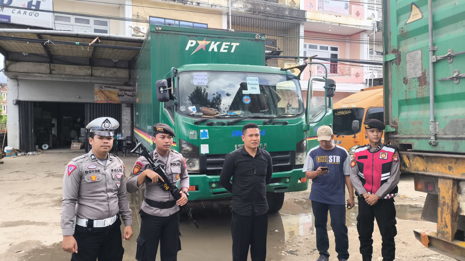 Purnamanews.com – Sintang, Kalbar. Personel Polres Sintang melakukan pengamanan ketat dalam proses pengiriman logistik Pemilu 2024 berupa bilik dan kotak suara dari Kantor KPU Provinsi Kalimantan Barat ke Kabupaten Sintang. Pengawalan tersebut dimulai pada hari Minggu, sekitar pukul 15.00 WIB, dengan personel yang bersiaga di dua lokasi, yakni di Kantor Indah Kargo Logistic, Jalan A. Yani 2, dan Pelabuhan Dwikora Pelindo Regional 2 Pontianak Minggu (29/9).