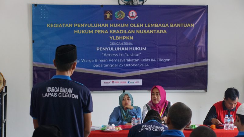 CILEGON, INFO_PASS – Lembaga Bantuan Hukum Pena Keadilan Nusantara (YLBHPKN) menyelenggarakan kegiatan penyuluhan hukum dengan tema “Access to Justice” bagi warga binaan Pemasyarakatan Kelas IIA Cilegon. Acara ini bertujuan untuk memberikan pemahaman hukum yang lebih mendalam kepada warga binaan, agar mereka mendapatkan akses terhadap keadilan secara maksimal selama menjalani masa tahanan. Jumat (25/10)