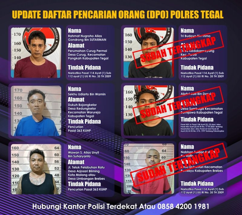 Purnamanews.com – SLAWI. Gerak cepat Polres Tegal dalam merespons insiden pelarian enam tahanan membuahkan hasil signifikan. Tiga dari enam pelaku yang melarikan diri dari ruang tahanan Polres Tegal pada Jumat dini hari, 25 Oktober 2024, berhasil ditangkap kembali oleh tim gabungan personel Polres di berbagai lokasi berbeda.