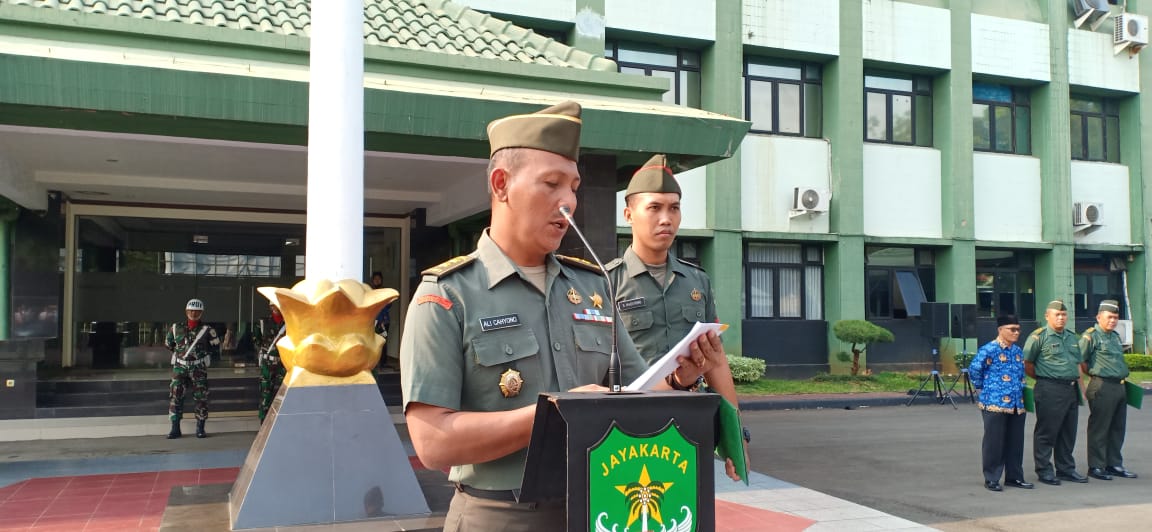 Dalam upacara memperingati Hari Sumpah Pemuda tersebut Kasdim 0505/JT Letkol Inf Ali Cahyono.,S,Kom.,M.Tr (Han), membacakan sambutan Menteri Pemuda dan Olahraga RI pada Peringatan Hari Sumpah Pemuda ke 96 Tahun 2024.
