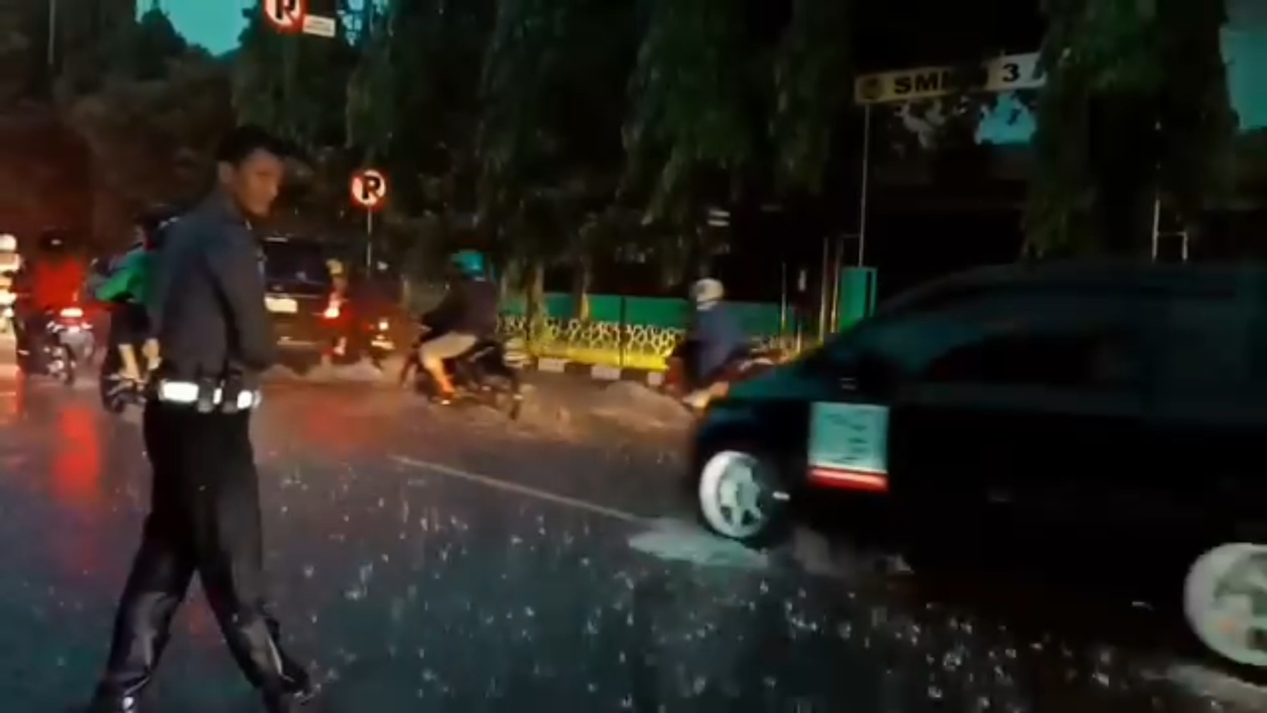 Purnamanews.com | Kediri Kota – Hujan dengan intensitas tinggi akhir – akhir ini mengguyur wilayah Kediri dan sekitarnya, akibatnya, beberapa jalanan umum dipenuhi genangan air. Hal ini sangat berbahaya bagi pengguna jalan, seperti pemotor, apabila tidak hati – hati, bisa juga keadaan ini menjadi salah satu pemicu laka lantas.