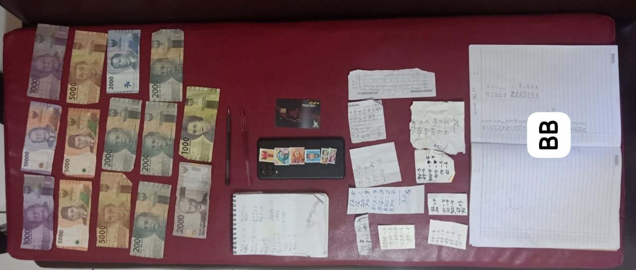 “Barang bukti berupa uang tunai sebesar Rp 63.000,-, satu unit handphone Samsung A12, ATM Bank Mandiri, beberapa alat tulis, serta buku catatan berisi angka-angka togel turut diamankan di lokasi,” ujarnya.