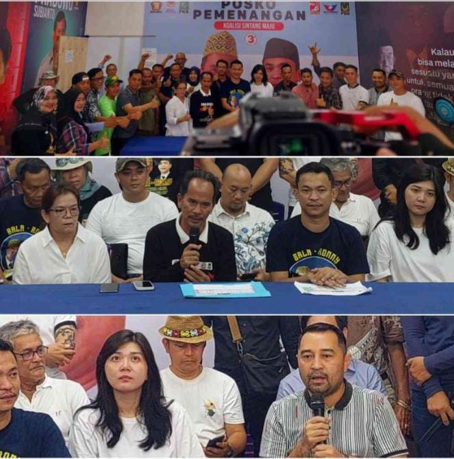 Konferensi Pers tersebut dihadiri oleh puluhan awak media, dipenuhi ratusan anggota Tim Koalisi Partai dan Tim Relawan.