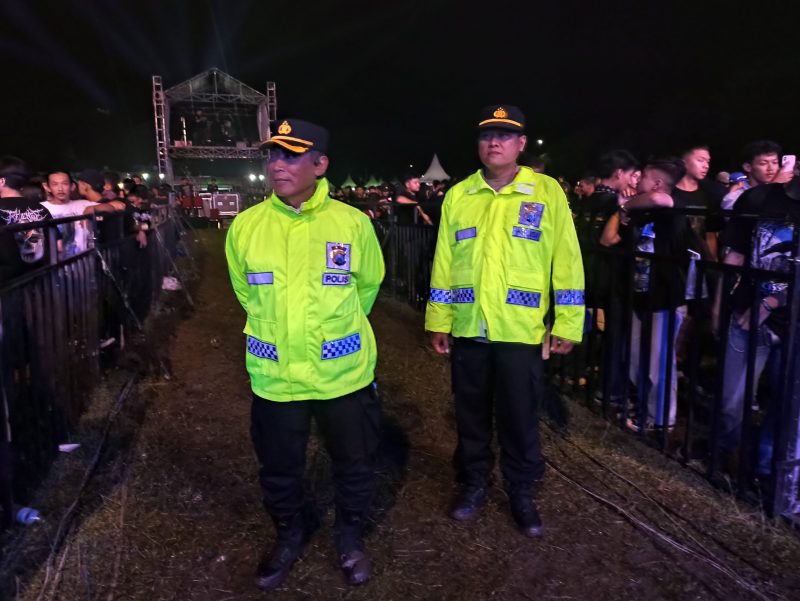 Pantauan Wartawan, Kompol Mukhlason menunggui ( stand by ) di tengah – tengah kerumunan ratusan penonton yang sedang melakukan ‘ moshing ‘ ( joged ala anak punk ).