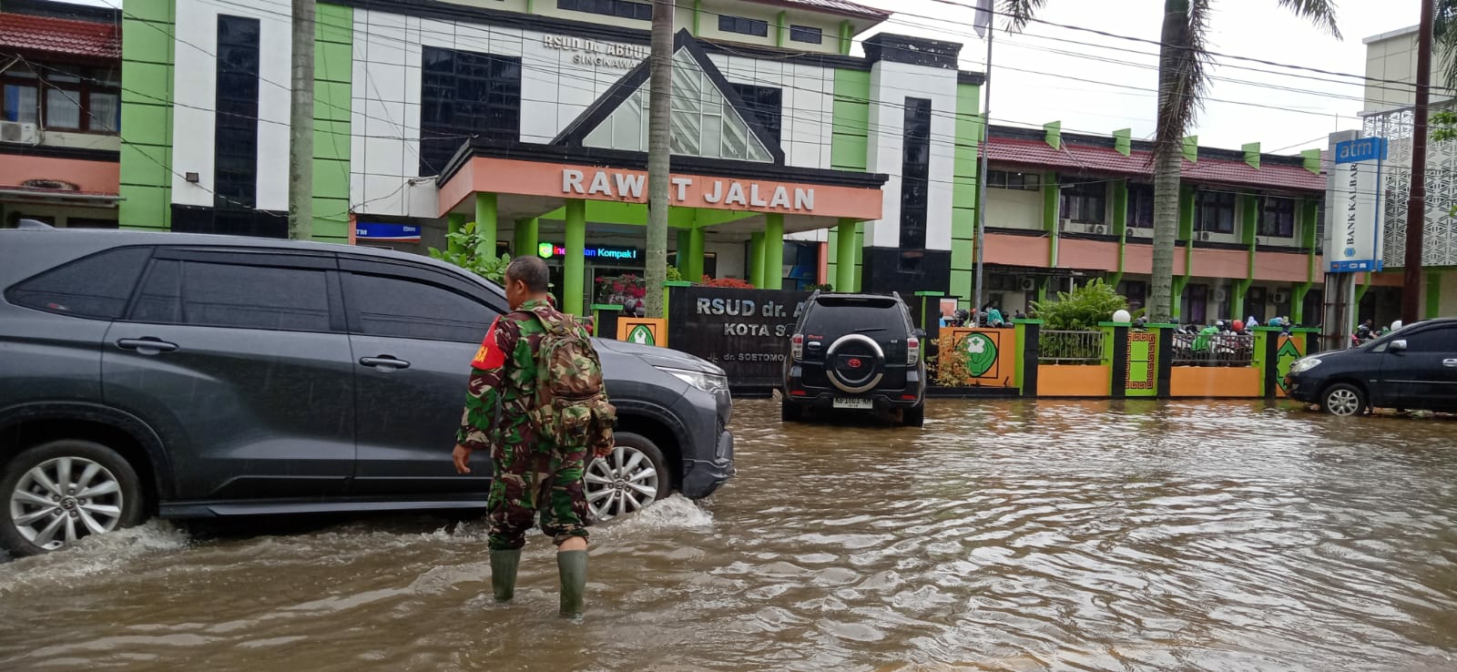 Sementara itu, Babinsa Serda Darmaji menyampaikan, Banjir di lokasi ini disebabkan oleh curah hujan yang tinggi sepanjang malam, mengakibatkan meluapnya air di bantaran sungai dan drainase perumahan warga.