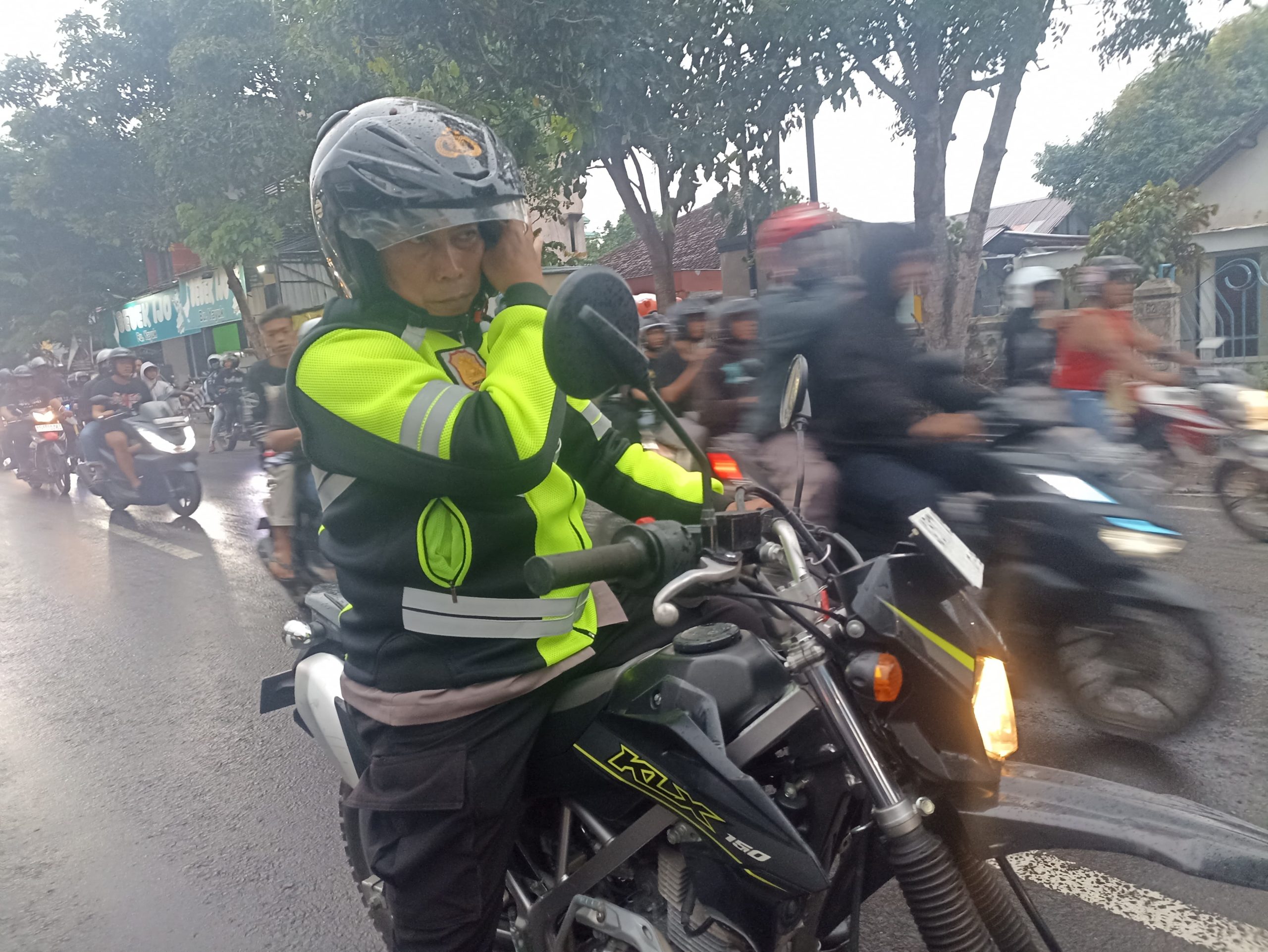 Purnamanews.com | Kediri Kota – Meski diguyur hujan lebat, tak menyurutkan langkah, semangat dan dedikasi Kabag Ops Polres Kediri Kota Kompol Mukhlason dalam melakukan pengamanan dan pengawalan rombongan ratusan pesilat kembali ke daerah asalnya, Minggu 15 Desember 2024 sore. Ratusan rombongan pesilat itu pasca menghadiri acara tasyakuran yang diadakah oleh satu perguruan silat, di lapangan Kwangkalan, Kelurahan Tempurejo, Kecamatan Pesantren, Kota Kediri, Jawa Timur.