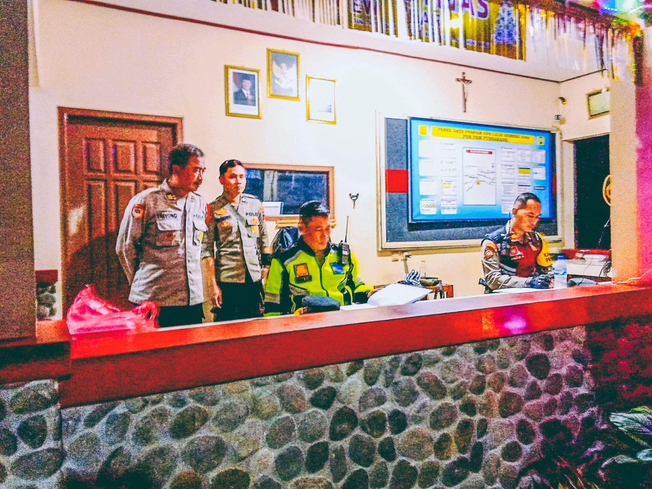 Pengecekan Pos PAM yang berlokasi di Simpang empat Mrican. ( Foto : PURNAMA NEWS.COM/ hernowo )