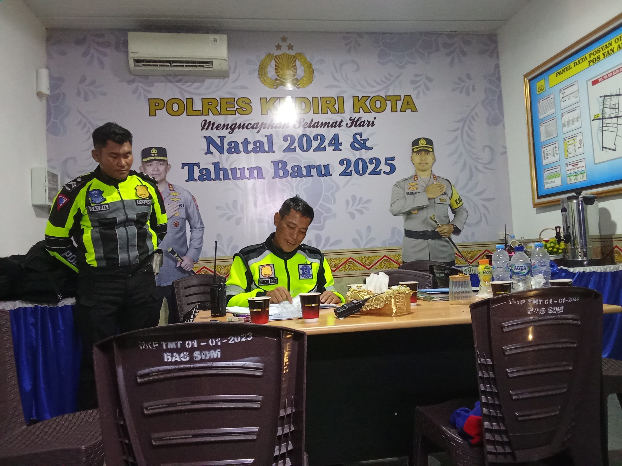 Seluruh kendaraan bermotor ( R2 ) dan roda empat yang melintasi depan ruas jalan Mako Satlantas Polres Kediri Kota dihentikan oleh petugas, untuk dilakukan pemeriksaan. ” Selain Surat surat bermotor, petugas juga memeriksa barang bawaan pemotor dan pengemudi roda 4, untuk memastikan tak ada narkoba, sajam, minuman keras, dan barang terlarang yang dibawa,” ujar mantan Kapolsek Mojoroto ini.