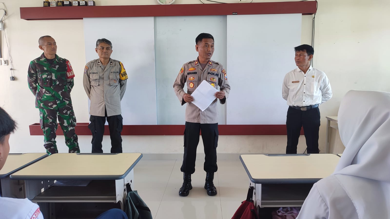 Purnamanews.com |Kediri Kota – Kapolsek Pesantren Polres Kediri Kota, Kompol Siswandi, S.H., bersama anggota melaksanakan kegiatan sosialisasi Pembukaan Penerimaan Peserta Didik Baru (PPDB) SMA Kemala Taruna Bhayangkara di SMPN 9 Kota Kediri, Selasa 7 Januari 2025