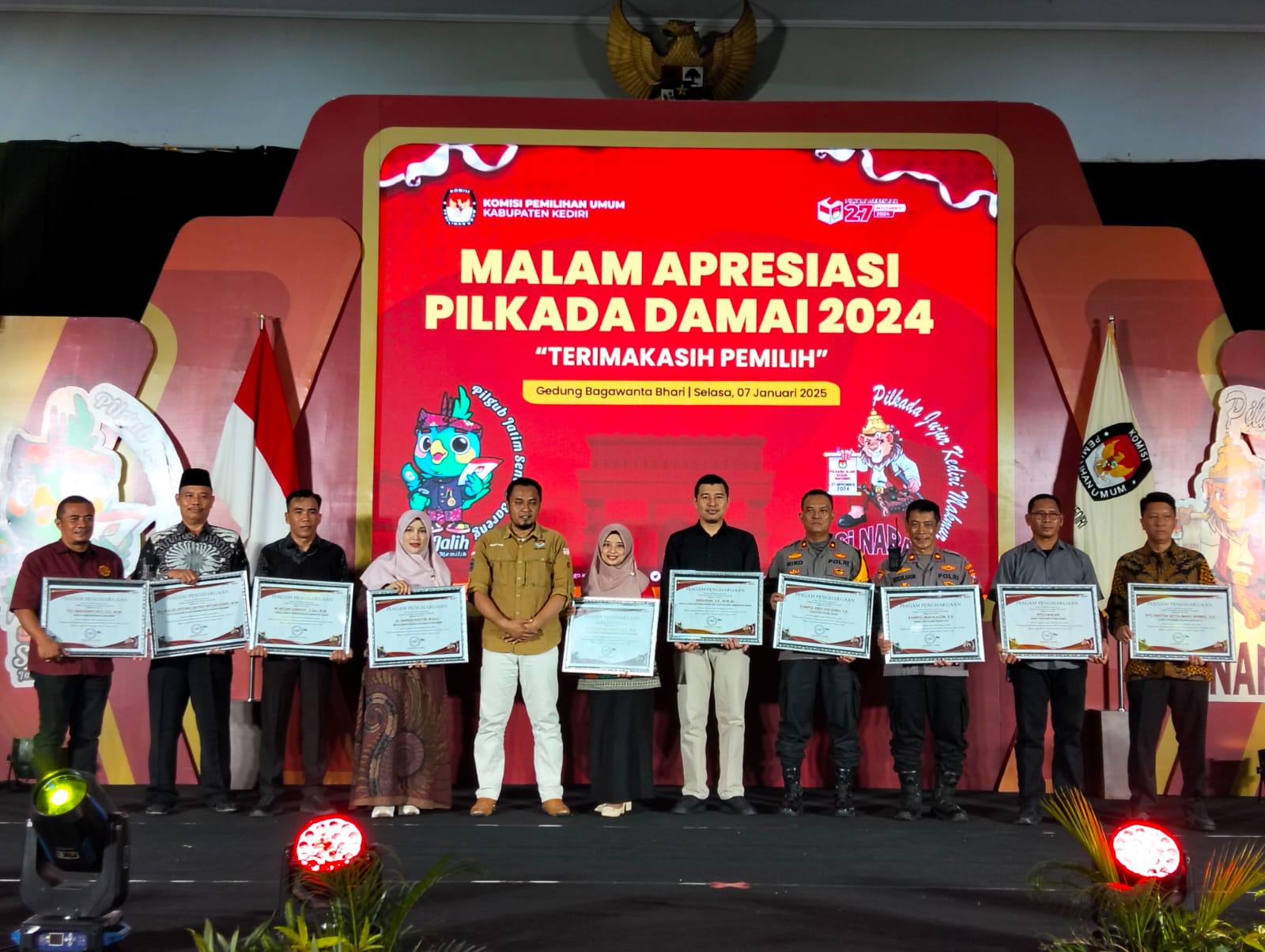 Malam Apresiasi Pilkada Damai 2024, KPU Kabupaten Kediri Berikan Penghargaan Kepada Polres Kediri Kota