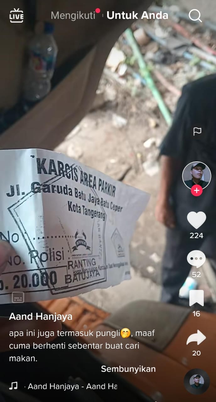 Tangerang – Polsek Batuceper Polres Metro Tangerang Kota bertindak cepat menanggapi sebuah video viral di TikTok yang diunggah oleh Aand Hanjaya. Dalam video tersebut, Aand mengeluhkan tarif parkir liar sebesar Rp. 20.000,- untuk parkir sebentar di Jalan Garuda, Kelurahan Batujaya, Kecamatan Batuceper, Kota Tangerang. Ia juga menunjukkan selembar karcis dengan logo organisasi masyarakat (ormas) BPPKB ranting Batujaya.