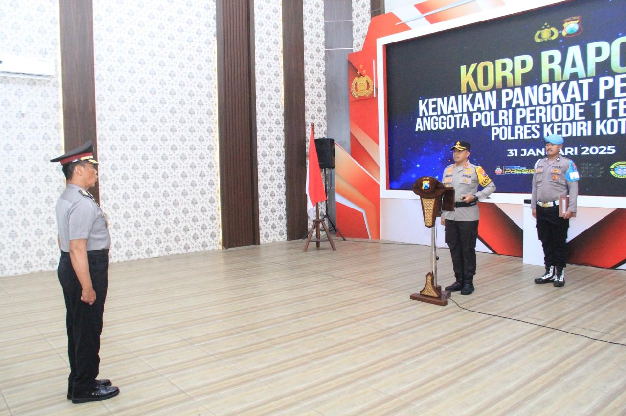 Kapolres Kediri Kota Pimpin Upacara Kenaikan Pangkat Pengabdian