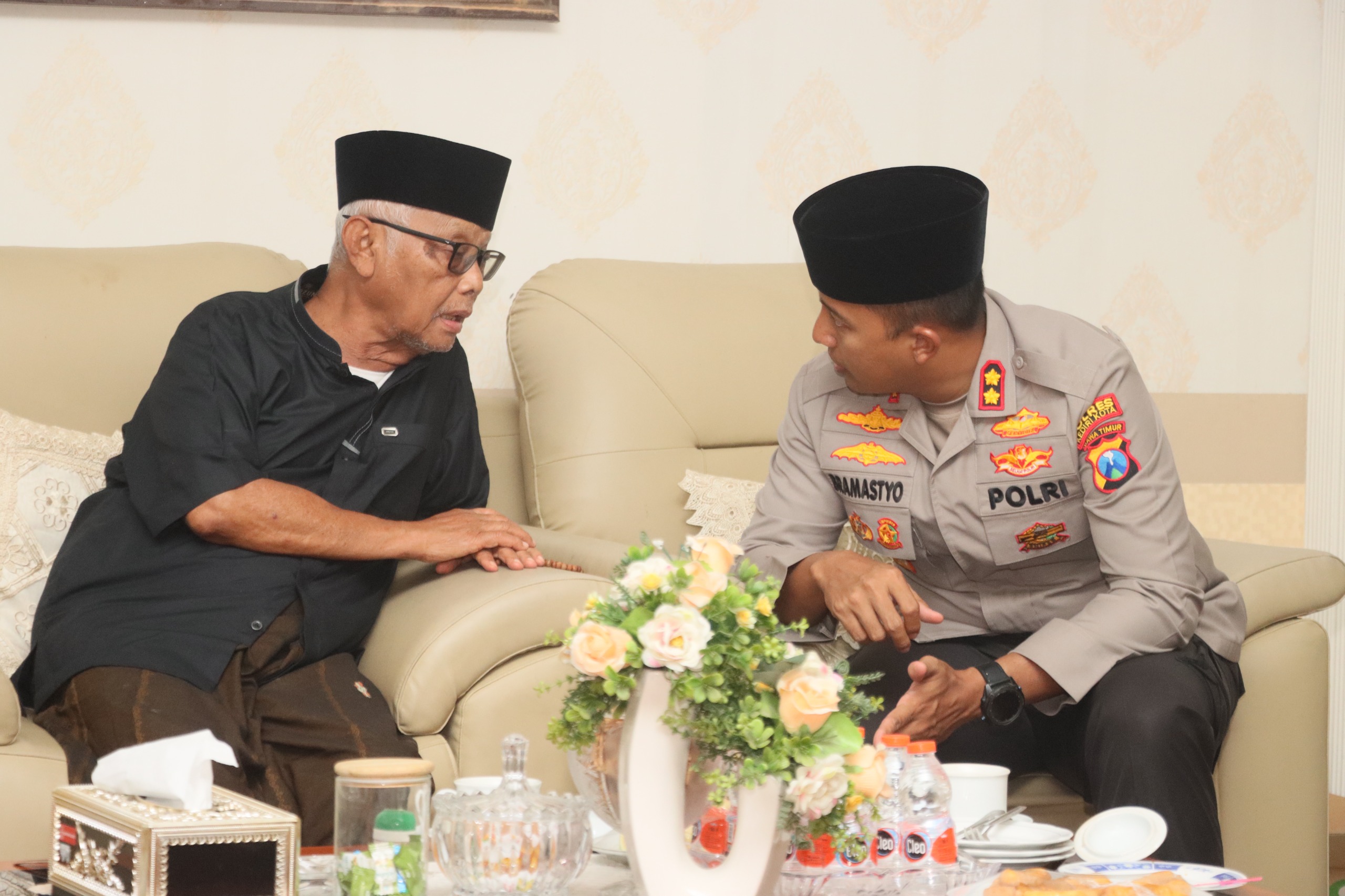 Purnamanews.com | Kediri Kota – Kapolres Kediri Kota AKBP Bramastyo Priaji, S.H., M.Si. bersama Karumkit RS Bhayangkara Kediri Kombes Pol drg. Agung Hadi Wijanarko, Sp.BM. bersilaturahmi ke Kediaman Ketua Umum MUI KH Anwar Iskandar yang juga pengasuh Ponpes Al Amin Kota Kediri, dalam rangka memperkuat hubungan antara Polri dan MUI, Selasa (25/2/2025).