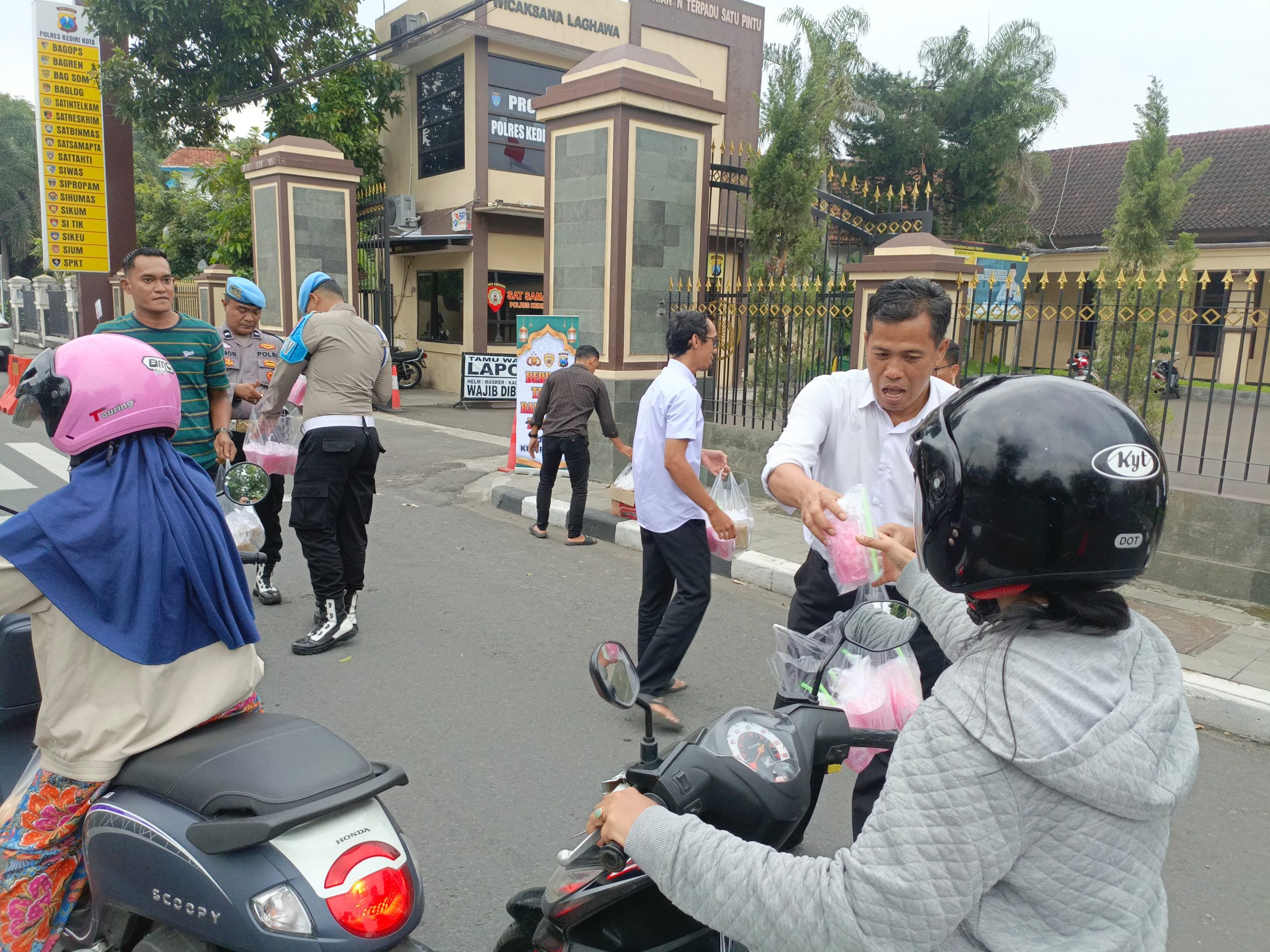 Sebagai silahturahmi antara kami sebagai Polri dengan masyarakat yang berada di wilayah hukum Polres Kediri Kota akan memberi takjil kepada pengendara motor khususnya bagi yang sedang berpuasa.