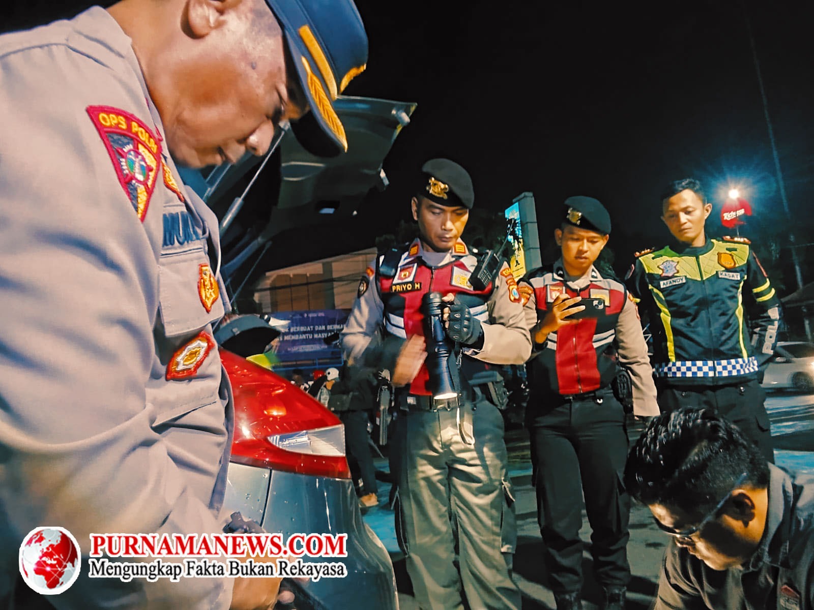 Dalam razia itu petugas menghentikan/ menyetop beberapa kendaraan roda dua dan empat, dengan humanis/ ramah serta sesuai SoP petugas menanyakan surat-surat kendaraan pengendara.