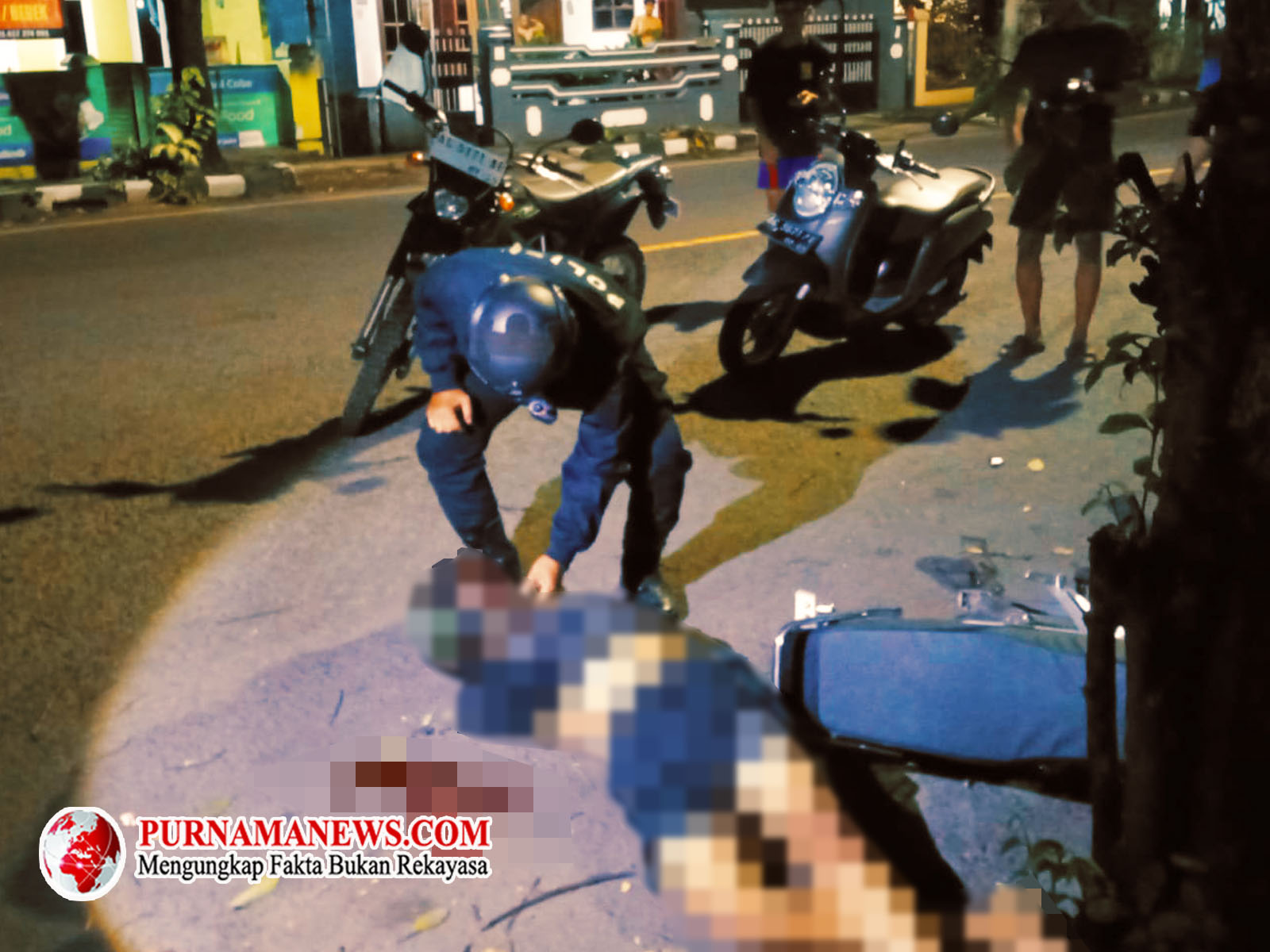 Saat itu, Kabag Ops tengah melaksanakan patroli dengan mengendarai motor R2. Kemudian, saat melintasi Jalan Imam Bonjol tiba – tiba melihat ada kerumunan warga di bahu jalan. Dan saat dihampiri ternyata ada korban laka tunggal tergeletak ( dalam posisi telentang – Red ) beserta sepeda motor yang dikendarainya.