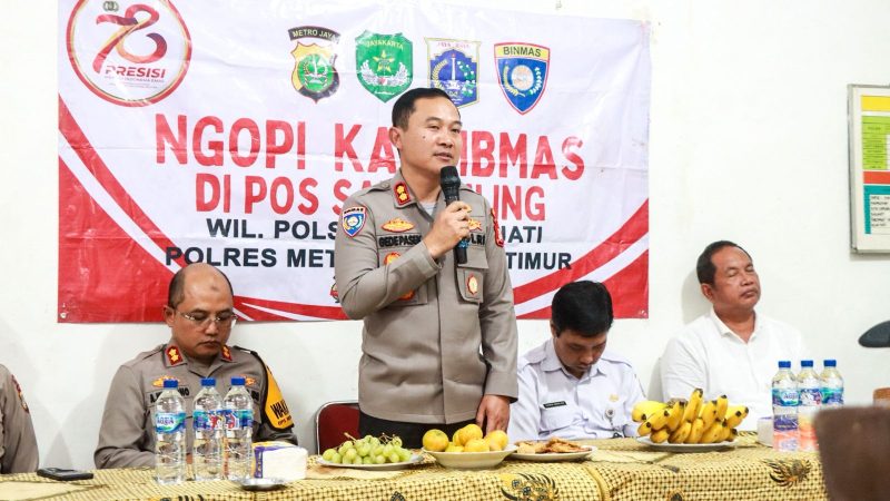 Jakarta – Polres Metro Jakarta Timur kembali menggelar kegiatan Ngopi Kamtibmas sebagai bentuk pendekatan humanis kepolisian kepada masyarakat. Kali ini, kegiatan berlangsung pada Rabu malam (14/5/2025) di Pos Sekretaris RW 009, Jalan Sutoyo, Kelurahan Cawang, Kecamatan Kramat Jati, Jakarta Timur. Warga menyampaikan langsung berbagai permasalahan, terutama maraknya tawuran remaja dan perlakuan terhadap anggota Linmas.