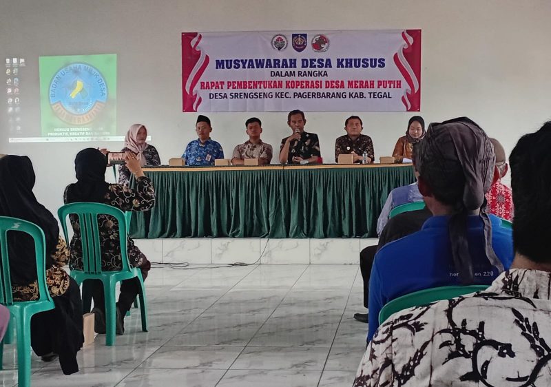 Purnamanews.Com – Tegal. Musyawarah desa khusus yang diselenggarakan oleh desa Srengseng adalah dalam rangka rapat pemilihan atau pengangkatan pengurus dan pembentukan koprasi desa Merah Putih yang merupakan program pemerinta indonesia,Selasa 19/5/2025