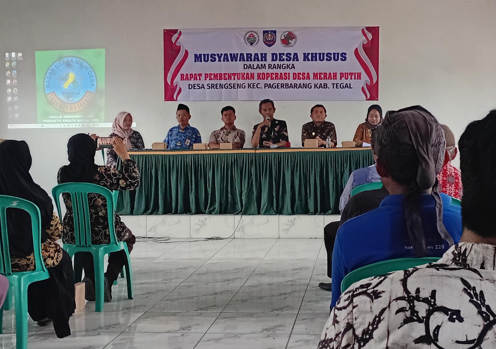 Acara kegiatan musyawarah desa khusus dalam rangka rapat pembentukan koprasi Merah Putih dihadiri oleh Kepala desa Srengseng, Dinas koprasi kabupaten Tegal,Sekcam Pagerbatang ,Notaris,ketua BPD,lembaga lembaga desa dan tokoh masyarakat desa Srengseng