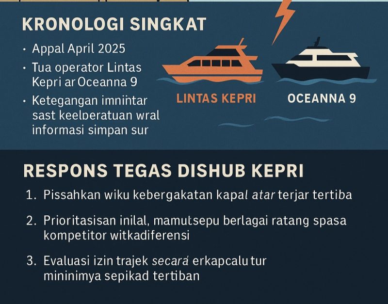 Awal April 2025, dua operator kapal cepat, Lintas Kepri dan Oceanna 9, bersaing memperebutkan jadwal keberangkatan di Pelabuhan Sungai Tenam.