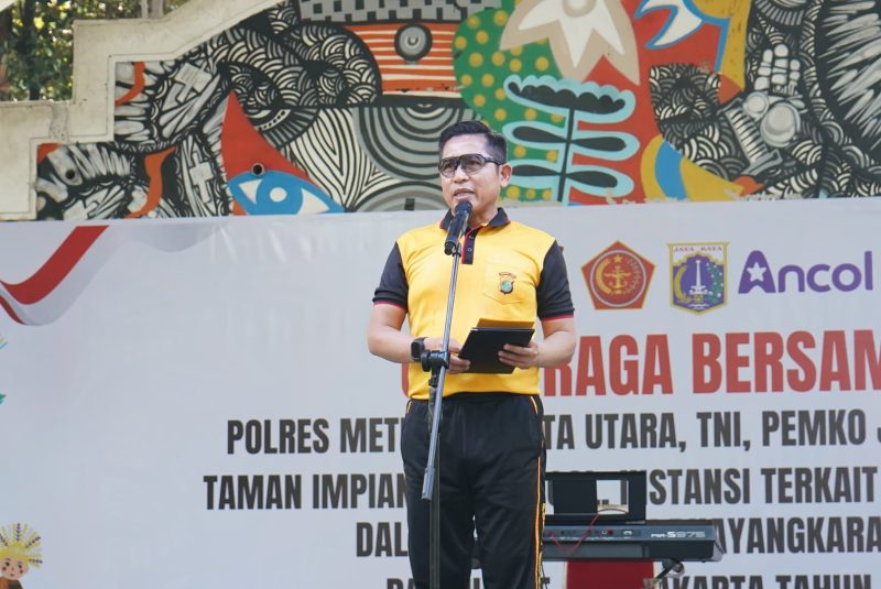Jakarta Utara – Dalam rangka memperingati Hari Ulang Tahun (HUT) Bhayangkara ke-79 sekaligus HUT ke-498 Kota Jakarta, Polres Metro Jakarta Utara bersama unsur TNI, Pemerintah Kota Jakarta Utara, PT. Taman Impian Jaya Ancol, instansi terkait, dan masyarakat menggelar kegiatan olahraga bersama di kawasan Pasar Seni dan Taman Eco Park, Ancol, Pademangan, Jakarta Utara, Selasa (24/6/2025) pagi.