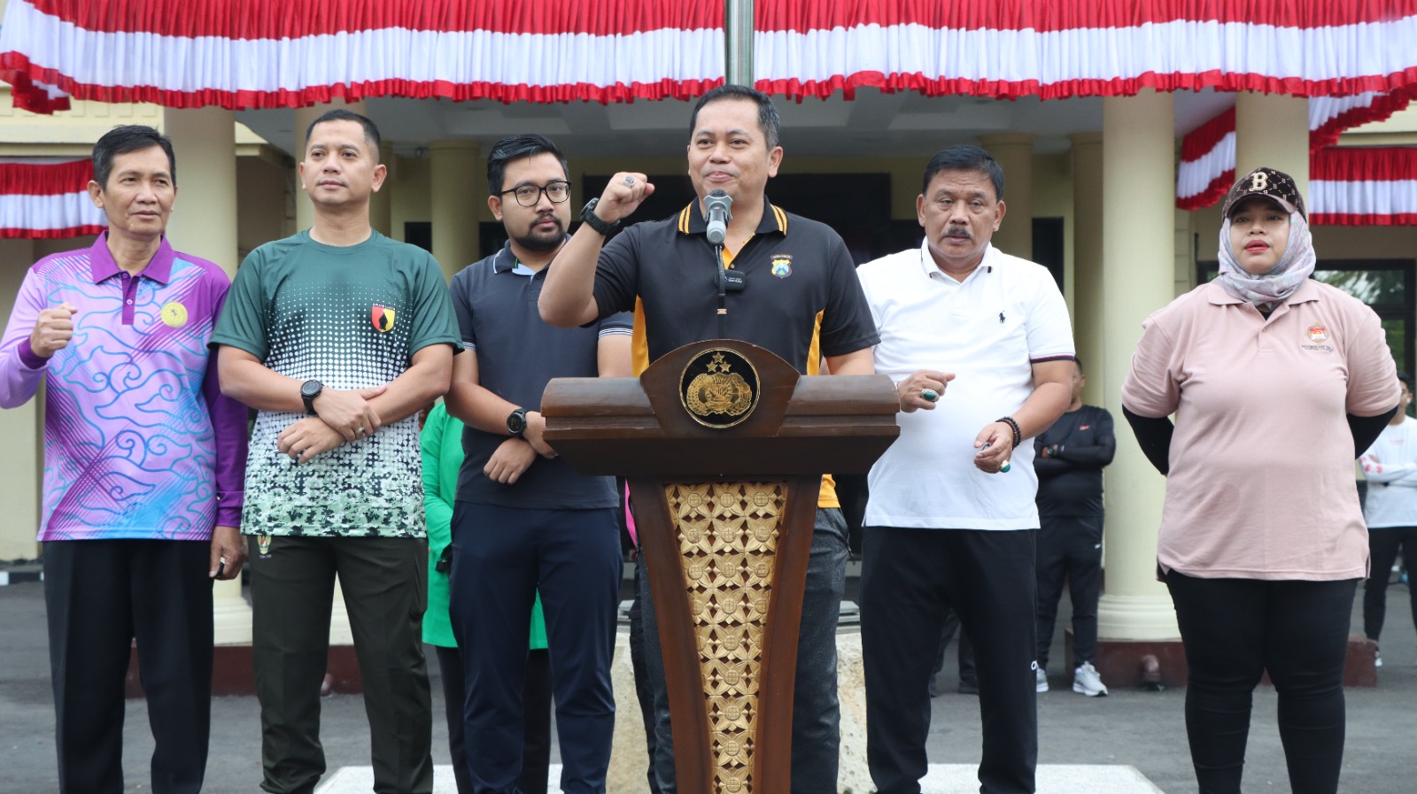 “Olahraga bersama ini tidak hanya soal kesehatan fisik, tapi juga mempererat koordinasi dan kebersamaan dalam membangun Nganjuk yang aman, nyaman, dan harmonis,” tutur Bupati Marhaen.