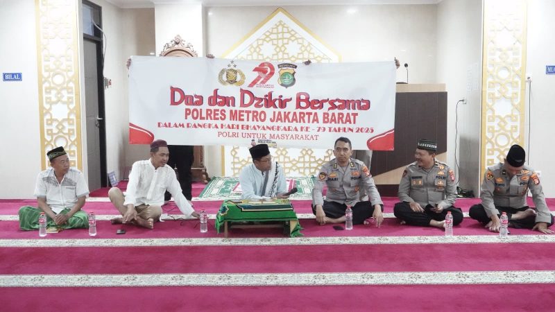 Jakarta Barat – Dalam suasana penuh kekhusyukan dan kebersamaan, Polres Metro Jakarta Barat menggelar kegiatan doa dan dzikir bersama warga dalam rangka menyambut malam 1 Muharram 1447 Hijriah, yang juga menjadi bagian dari rangkaian peringatan Hari Bhayangkara ke-79.