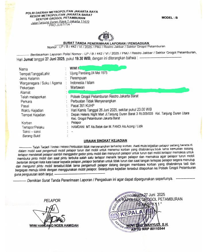 Resmi melaporkan ke Polsek Tanjung Duren dan lagi tahap penyelidikan Polsek Grogol Petamburan Wiwi berharap laporan segera di proses dan pelaku segera di tangkap ( Tim)