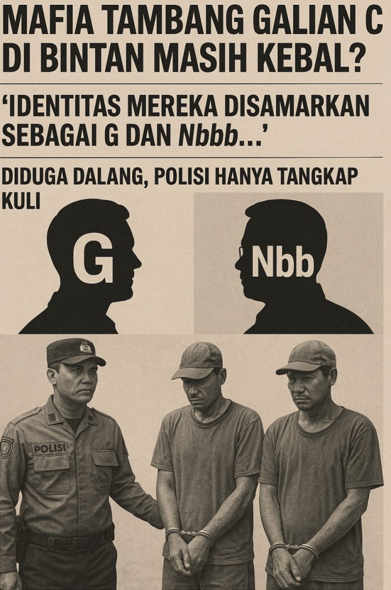 Purnama News|Bintan – Penegakan hukum tambang pasir ilegal di Bintan kembali menuai tanda tanya besar. Meski dua kuli tambang ditangkap pada Selasa (15/07/2025) dalam penggerebekan di Desa Toapaya oleh Unit III Satreskrim Polres Bintan, dua nama yang diduga kuat sebagai dalang utama, Gito dan Nababan, justru tak tersentuh. Sabtu, 19/07/2025.