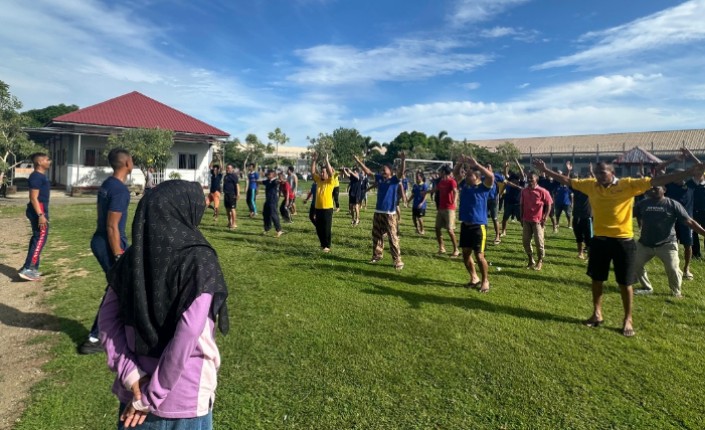 Warga Binaan Lapas Kelas IIA Banda Aceh lakukan Senam akhir pekan Demi Menjaga Kesehatan