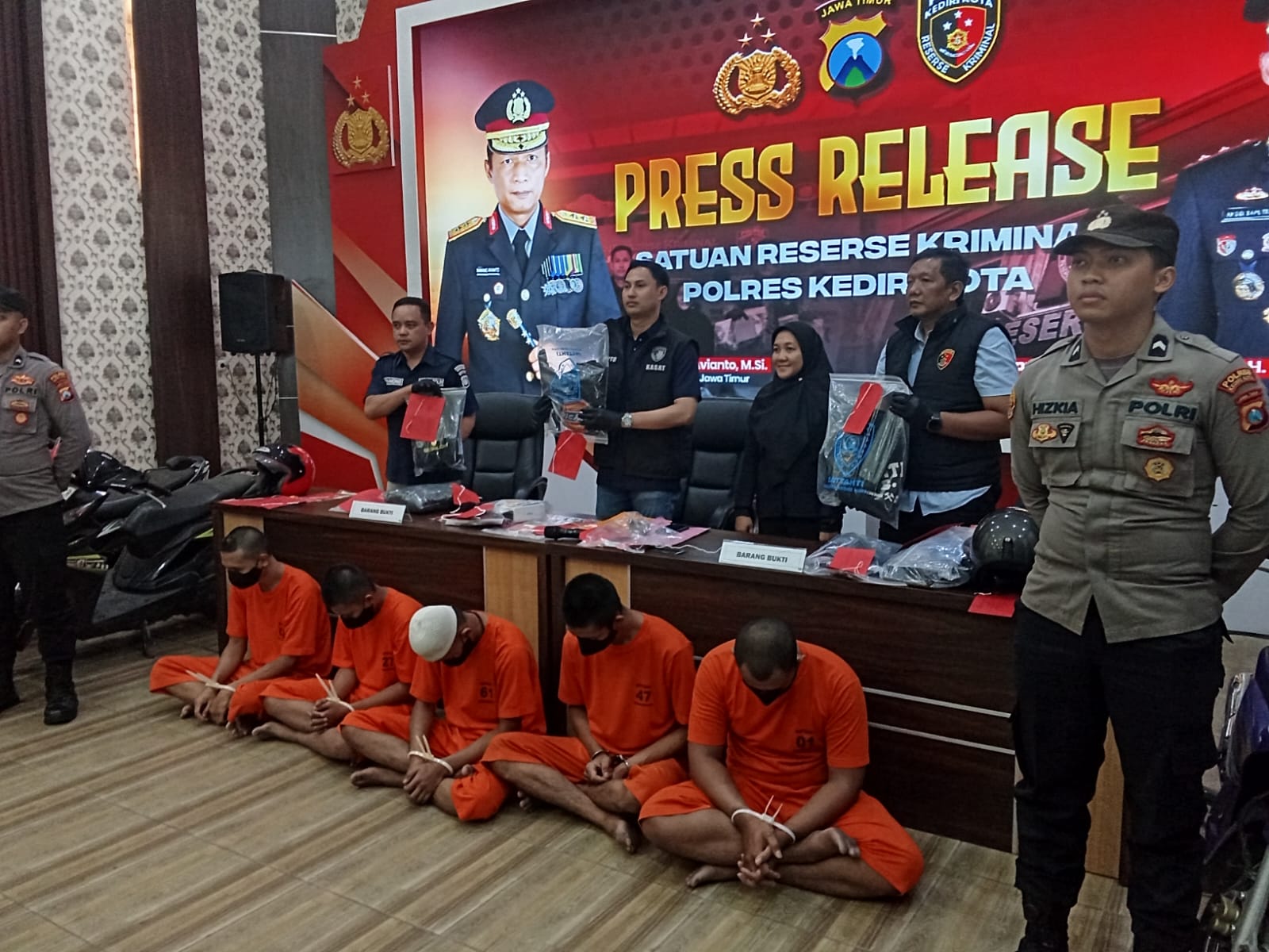Tersangka MR (15) asal Kecamatan Semen, RDM (16) dan AR (18) asal Kecamatan Gampengrejo, FA (18) asal Kecamatan Ngasem dan MA (20) asal Kecamatan Kayen Kidul.