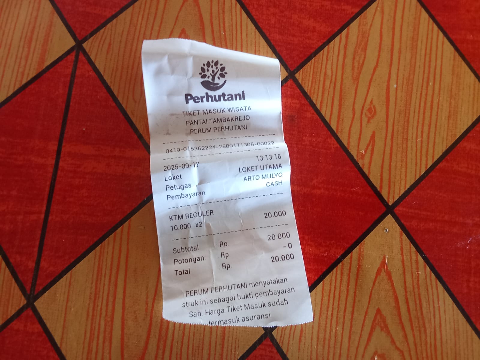 Namun, ada hal menarik di balik aturan tiket masuk. Berdasarkan pantauan tim jurnalis media ini pada Rabu siang (17/9/2025), setiap pengunjung dikenai tarif Rp 10 ribu per orang. Saat itu, tim jurnalis yang datang berdua – masing-masing dari media berbeda – dikenai total Rp 20 ribu. Uniknya, petugas loket hanya memberikan satu karcis dengan nominal Rp 20 ribu, bukan dua karcis terpisah.