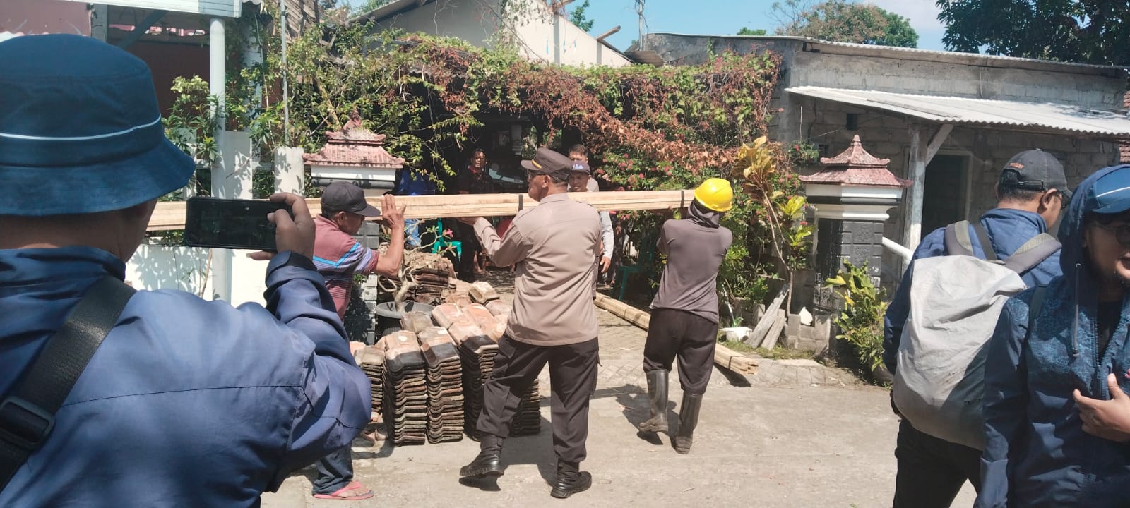 Tampak personel Polsek Kepung bahu membahu dengan warga menyingkirkan material yang berserakan, memperbaiki atap rumah, hingga memastikan jalur listrik aman digunakan kembali.