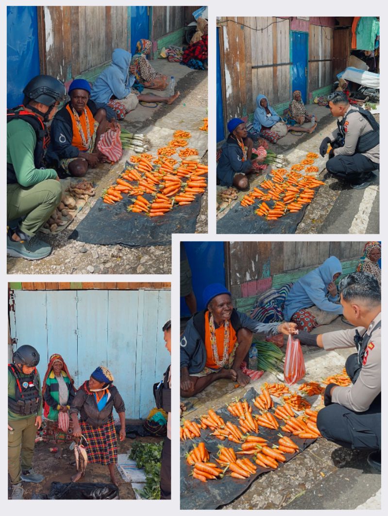 Dalam kegiatan tersebut, personel Ops Damai Cartenz berinteraksi langsung dengan para mama-mama penjual sayuran dengan cara berbelanja hasil bumi yang mereka tawarkan. Selain sebagai bentuk kepedulian terhadap pelaku ekonomi kecil, kegiatan ini juga menjadi sarana memperkuat kedekatan serta membangun komunikasi yang harmonis dengan masyarakat. Kehangatan dan keakraban pun terlihat jelas melalui sapaan serta senyum dari mama-mama pedagang yang merasa diperhatikan.