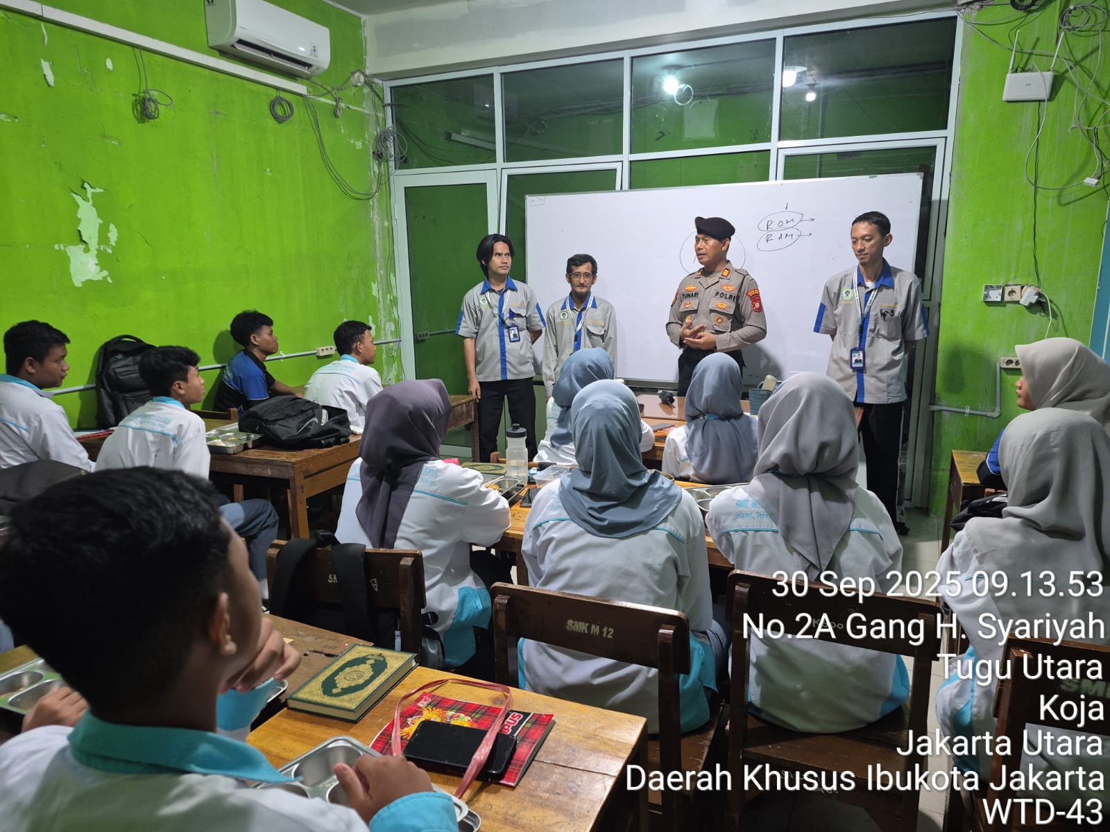 Jakarta Utara – Dalam rangka menjaga situasi kamtibmas yang aman dan kondusif, Polres Metro Jakarta Utara melalui Satuan Samapta melaksanakan program Go To School dengan menyambangi SMK Muhammadiyah 12 Koja, Selasa (30/9/2025).