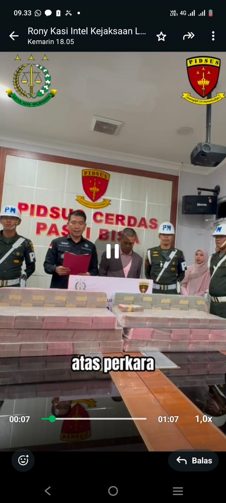Bahwa dapat kami sampaikan juga baik penyidik maupun penuntut umum pada Kejaksaan Tinggi Lampung masih terus berupaya untuk memulihkan semaksimal mungkin kerugian yang timbul atas perkara a quo baik yang kami dapat dari saksi – saksi maupun para tesangka lainnya, serta kami juga berkomitmen akan transparan terhadap seluruh penanganan perkara yang ditangani oleh Kejaksaan Tinggi Lampung.