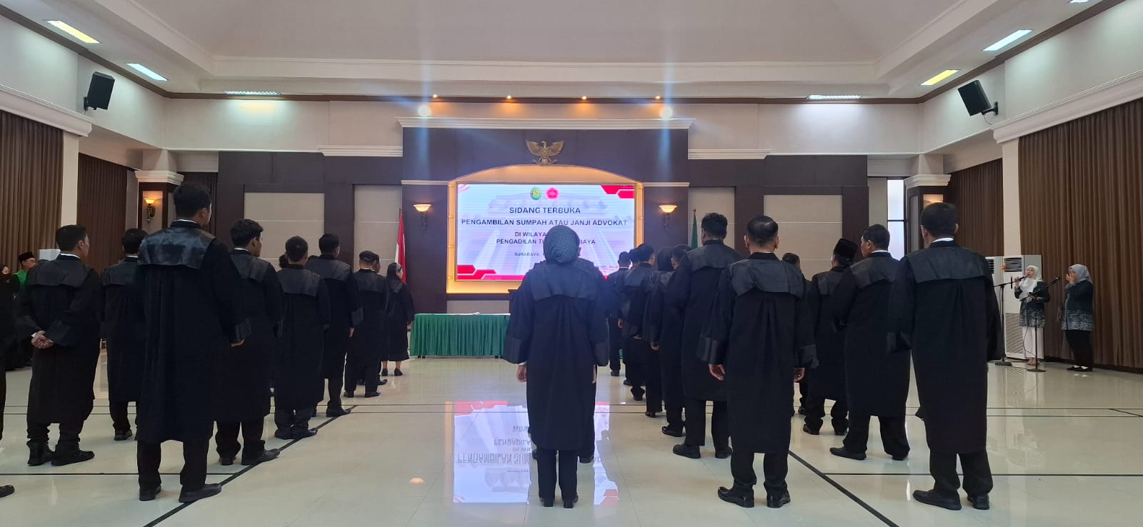 Pelantikan dan pengambilan sumpah dipimpin langsung oleh Ketua Pengadilan Tinggi Jawa Timur, Sujatmiko, S.H., M.H. Dalam sambutannya, ia menegaskan pentingnya tanggung jawab moral dan etika profesi bagi setiap advokat. Menurutnya, pelaksanaan sumpah advokat secara mandiri oleh PERADIN adalah langkah strategis yang menandai kematangan dan kemandirian organisasi advokat.